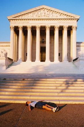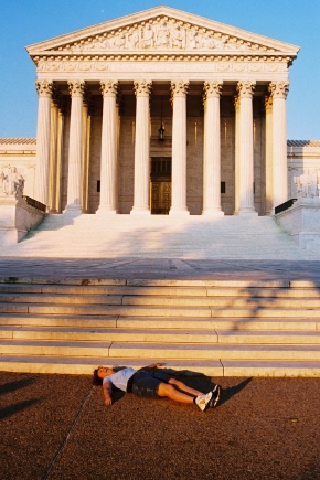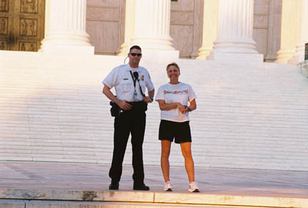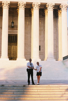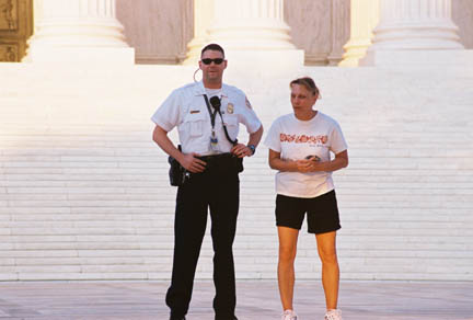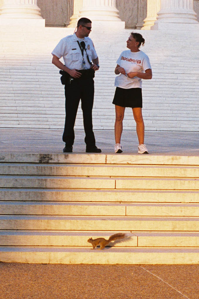 Here we see another young woman exercising her right to flirt in front of the Supreme Court.