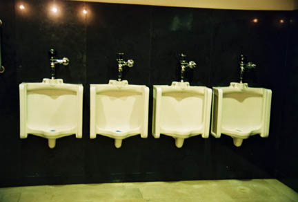 These are freaking big urinals. Perhaps this bathroom is in the Texas wing of the museum?